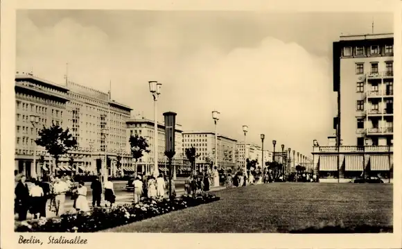Ak Berlin Friedrichshain, Stalinallee, Passanten