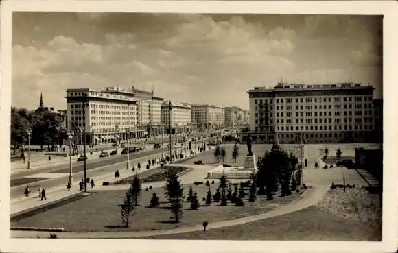 Ak Berlin Friedrichshain, Stalinallee, Stalin-Denkmal