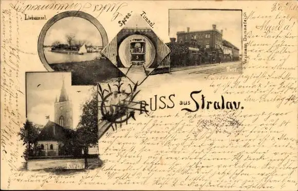 Ak Berlin Friedrichshain Stralau, Spreetunnel, Post, Kirche