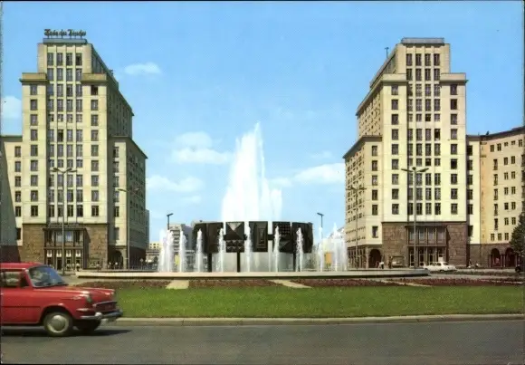 Ak Berlin Friedrichshain, Strausberger Platz, Springbrunnen