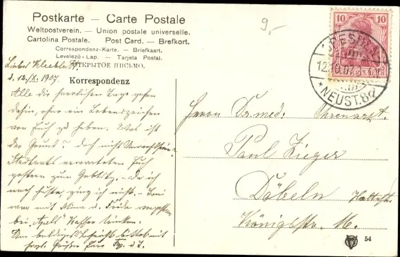 Zustand, siehe Scan, gelaufen, 1907 - ca 14 cm X 9 cm