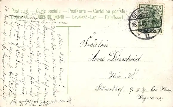 Zustand, siehe Scan, gelaufen, 1908 - ca 14 cm X 9 cm