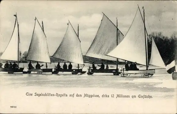 Ak Berlin Köpenick, Müggelsee, Segelschlitten-Regatta