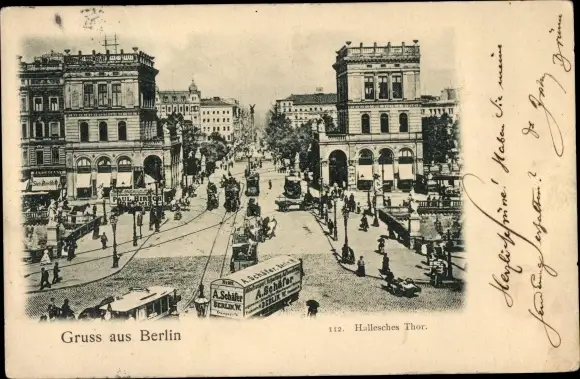 Ak Berlin Kreuzberg, Hallesches Tor, Pferdebahnen, Reklame A. Schäfer