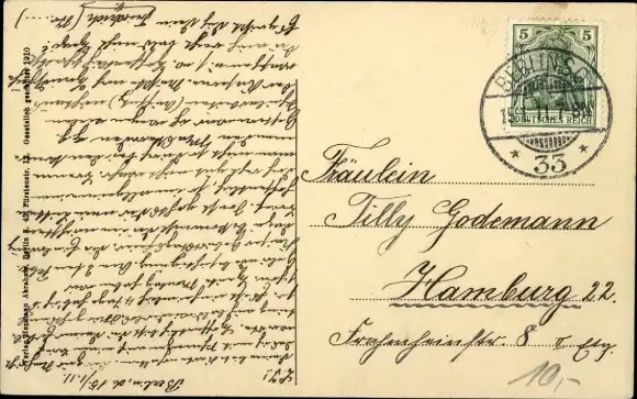Zustand, siehe Scan, gelaufen, 1911 - ca 14 cm X 9 cm