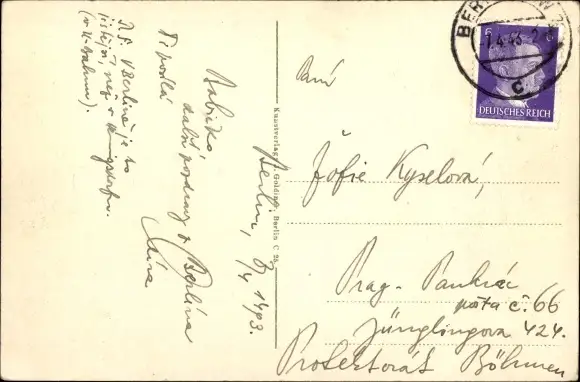Zustand, siehe Scan, gelaufen, 1943 - ca 9 cm X 14 cm