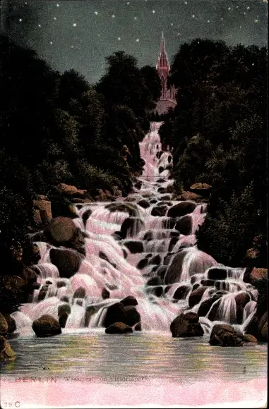 Ak Berlin Kreuzberg, Wasserfall im Victoriapark, Turm