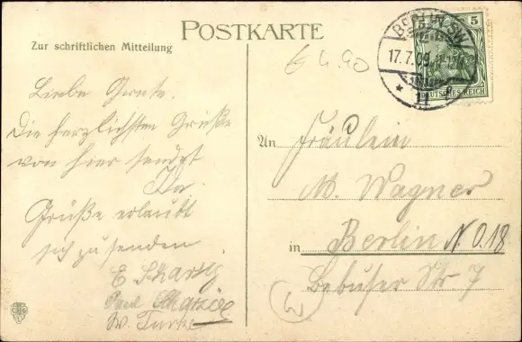 Zustand, siehe Scan, gelaufen, 1909 - ca 9 cm X 14 cm