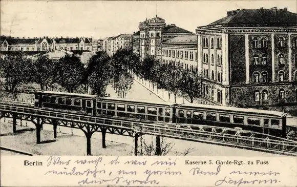 Ak Berlin Kreuzberg, Wrangelstraße, Kaserne des 3. Garde-Regiments zu Fuß, Hochbahn
