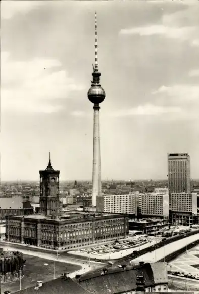 Ak Berlin Mitte, Alexanderplatz, Rotes Rathaus, Fernsehturm