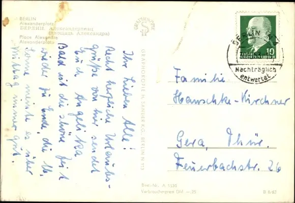 Zustand, siehe Scan, gelaufen, 1953 - ca 15 cm X 10 cm