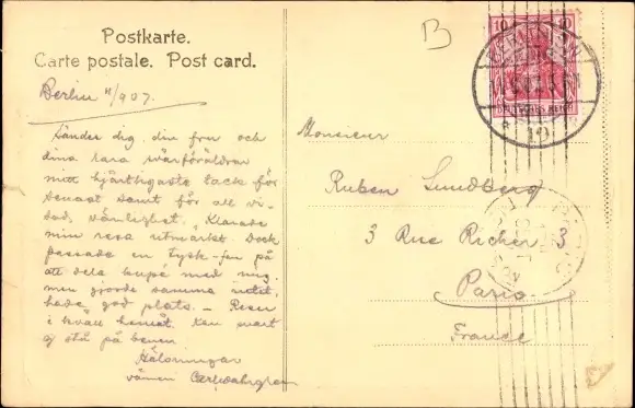 Zustand, siehe Scan, gelaufen, 1907 - ca 14 cm X 9 cm