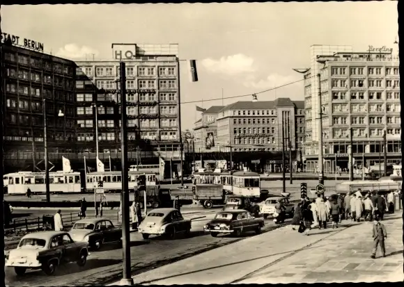 Ak Berlin Mitte, Alexanderplatz, Straßenbahnen, Autos