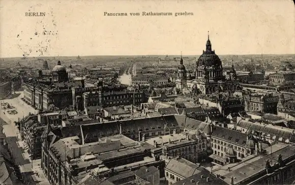 Ak Berlin Mitte, Blick vom Rathausturm, Schloss, Dom