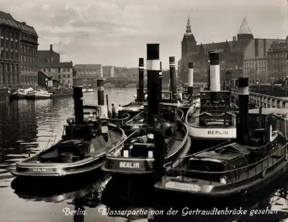 Ak Berlin Mitte, Blick von Gertraudtenbrücke, Spree, Boote, Brücke