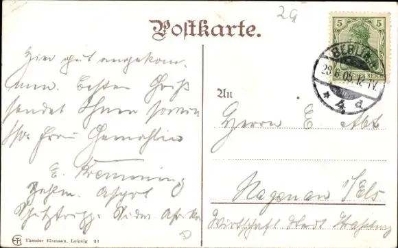 Zustand, siehe Scan, gelaufen, 1905 - ca 5 cm X 3 cm