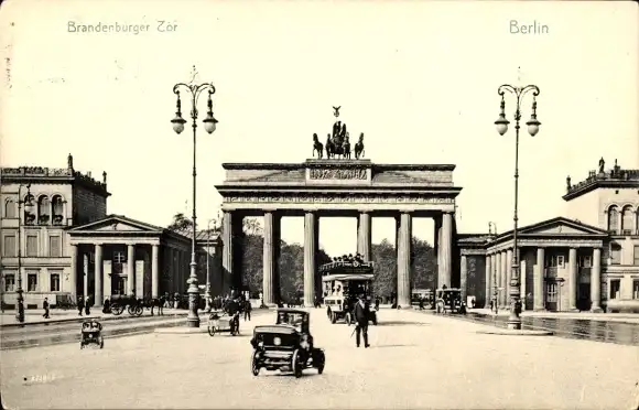 Ak Berlin Mitte, Brandenburger Tor, Auto, Bus