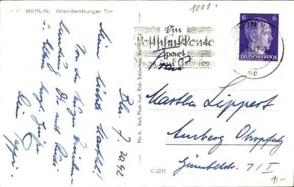 Zustand, siehe Scan, gelaufen, 1942 - ca 14 cm X 9 cm