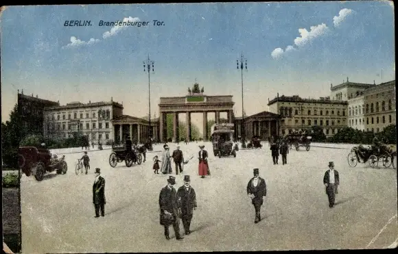 Ak Berlin Mitte, Brandenburger Tor, Kutschen, Passanten