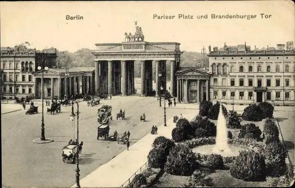 Ak Berlin Mitte, Brandenburger Tor, Pariser Platz, Springbrunnen