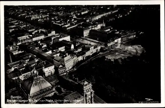 Ak Berlin Mitte, Brandenburger Tor, Pariser Platz, Unter den Linden, Fliegeraufnahme