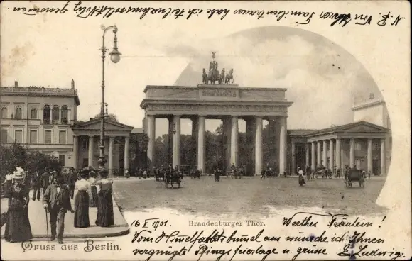 Ak Berlin Mitte, Brandenburger Tor, Passanten, Kutschen