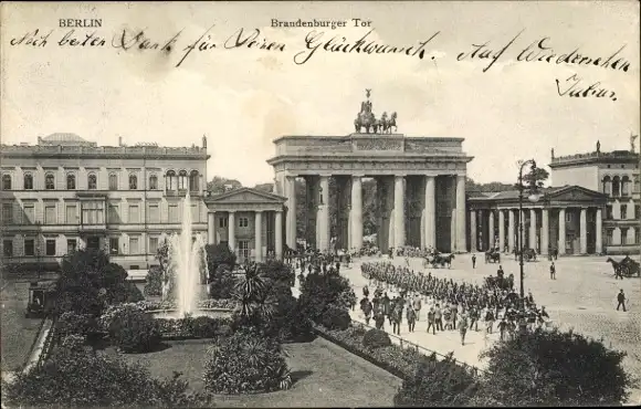 Ak Berlin Mitte, Brandenburger Tor, Springbrunnen