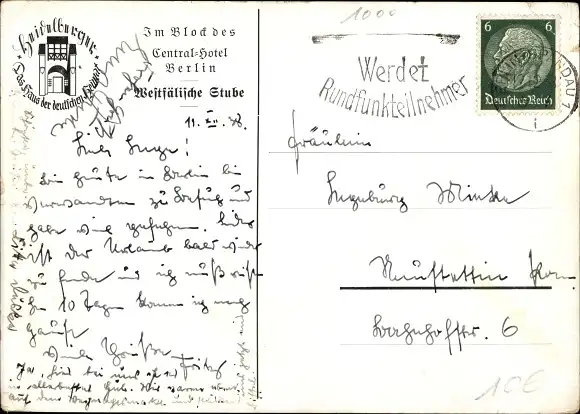 Ak Berlin Mitte, Centralhotel, Westfälische Stube