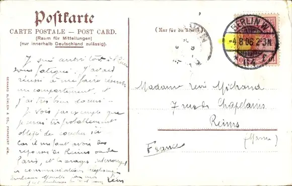 Zustand, siehe Scan, gelaufen, 1906 - ca 14 cm X 9 cm