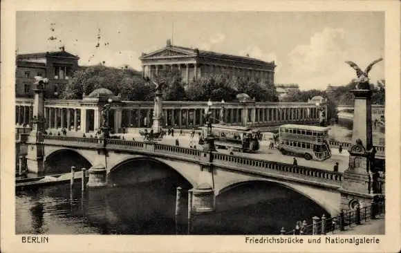 Ak Berlin Mitte, Friedrichsbrücke, Nationalgalerie, Bus, Straßenbahn