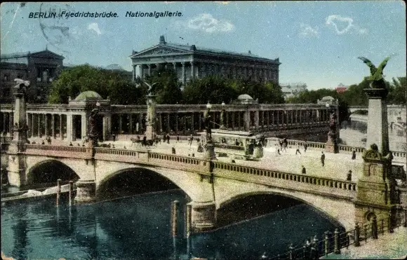 Ak Berlin Mitte, Friedrichsbrücke, Nationalgalerie, Straßenbahn