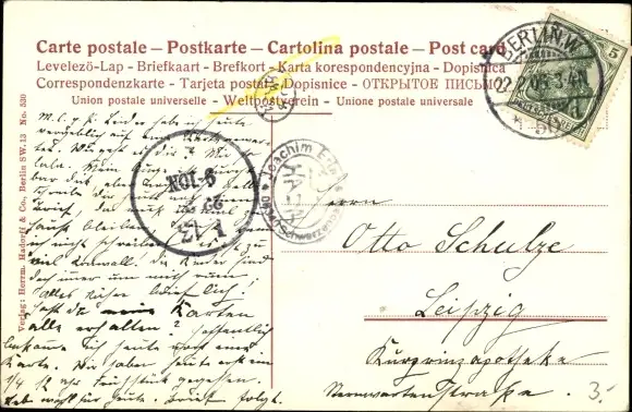 Zustand, siehe Scan, gelaufen, 1905 - ca 14 cm X 9 cm