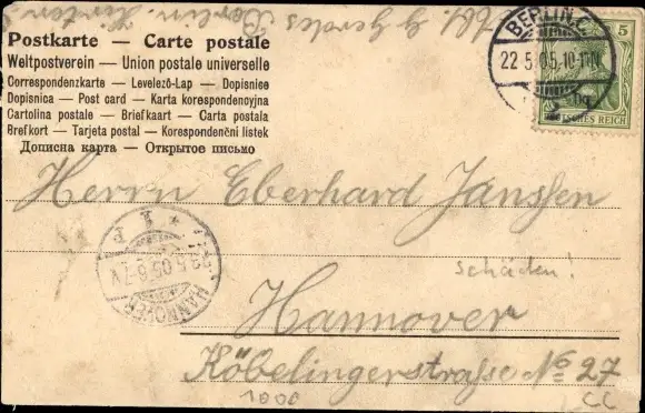 Zustand, siehe Scan, gelaufen, 1905 - ca 9 cm X 14 cm