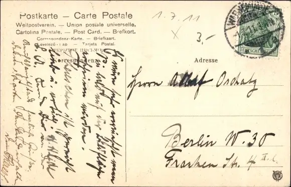 Zustand, siehe Scan, gelaufen, 1911 - ca 14 cm X 9 cm
