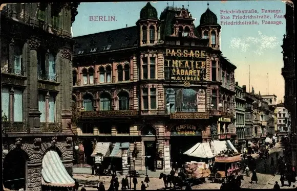 Ak Berlin Mitte, Friedrichstraße, Passage, Straßenszene, Omnibus, Kutsche