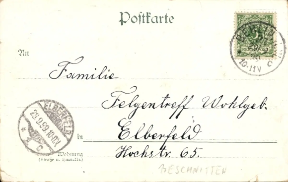 Zustand, siehe Scan, gelaufen, 1899 - ca 14 cm X 9 cm