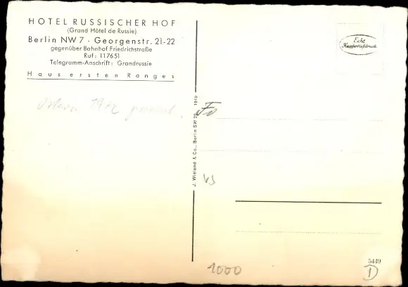 Ak Berlin Mitte, Hotel Russischer Hof, Empfangshalle