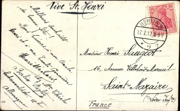 Zustand, siehe Scan, gelaufen, 1912 - ca 14 cm X 9 cm