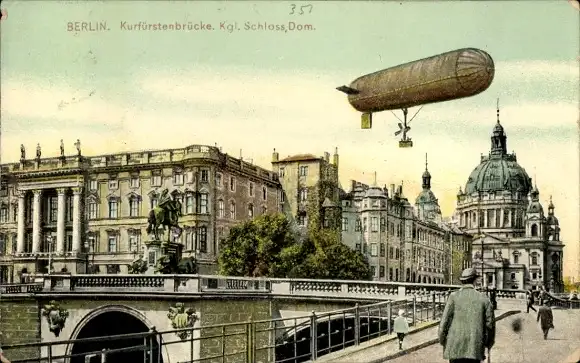 Ak Berlin Mitte, Kurfürstenbrücke, Kgl. Schloss, Dom, Zeppelin