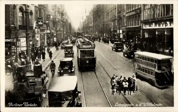 Ak Berlin Mitte, Leipziger Straße, Wilhelmstraße, Straßenbahn, Bus, Autos