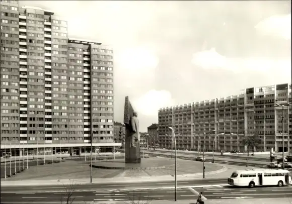Ak Berlin Mitte, Leninplatz, Statue, Hochhäuser