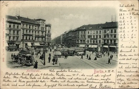 Ak Berlin Mitte, Moritzplatz, Straßenbahnen