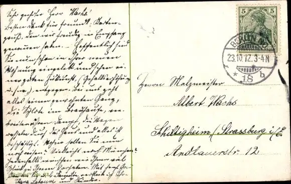 Zustand, siehe Scan, gelaufen, 1912 - ca 5 cm X 3 cm