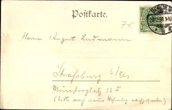Zustand, siehe Scan, gelaufen, 1898 - ca 15 cm X 9 cm