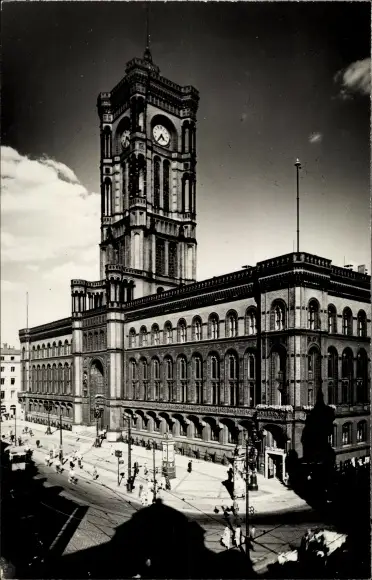 Ak Berlin Mitte, Rathaus, Straßenbahn, Straßenszene