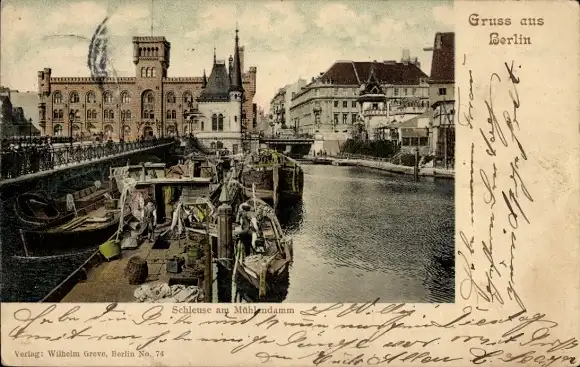 Ak Berlin Mitte, Schleuse am Mühlendamm