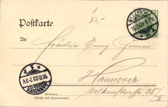 Zustand, siehe Scan, gelaufen, 1903 - ca 14 cm X 9 cm