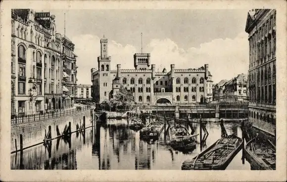 Ak Berlin Mitte, Städtische Sparkasse, Spree, Boote