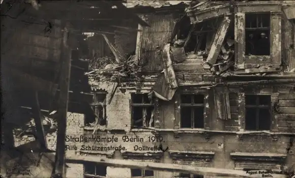 Ak Berlin Mitte, Straßenkampfe 1919, Vollteffer, zerstörtes Haus, Alte Schützenstraße