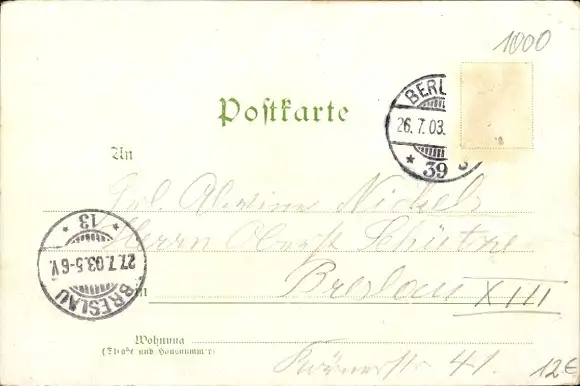 Zustand, siehe Scan, gelaufen, 1903 - ca 14 cm X 9 cm